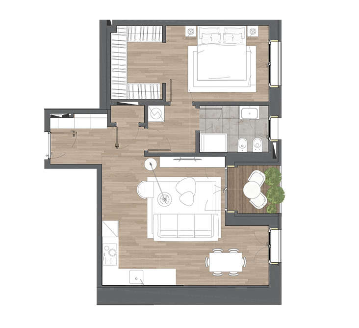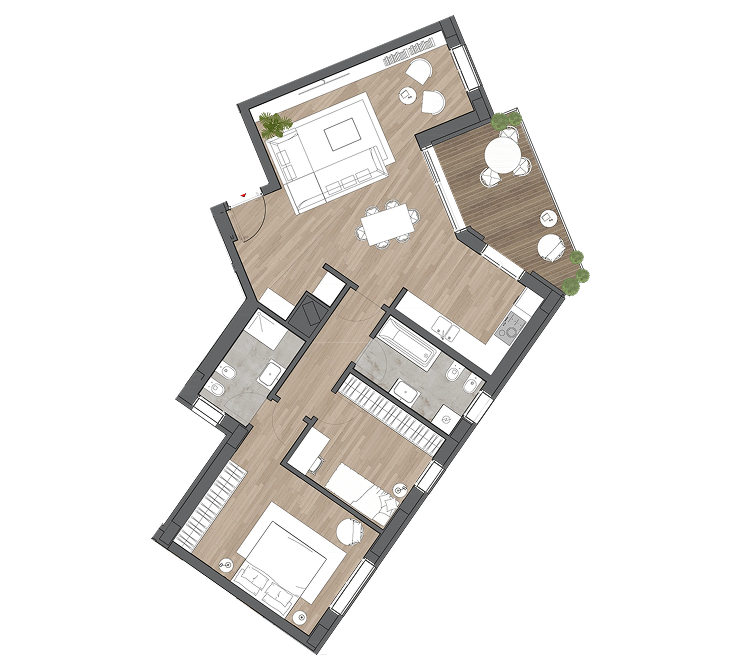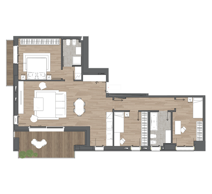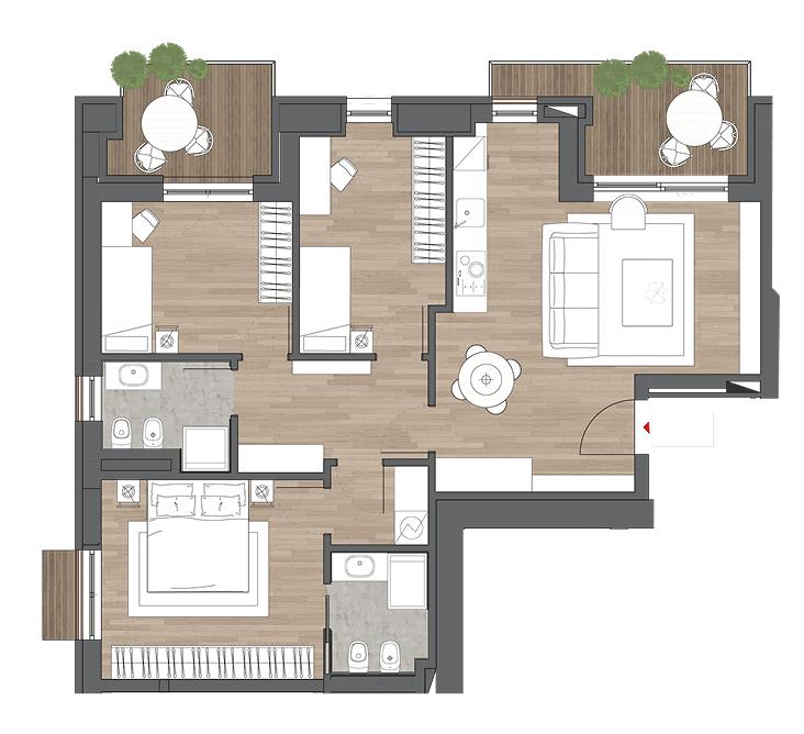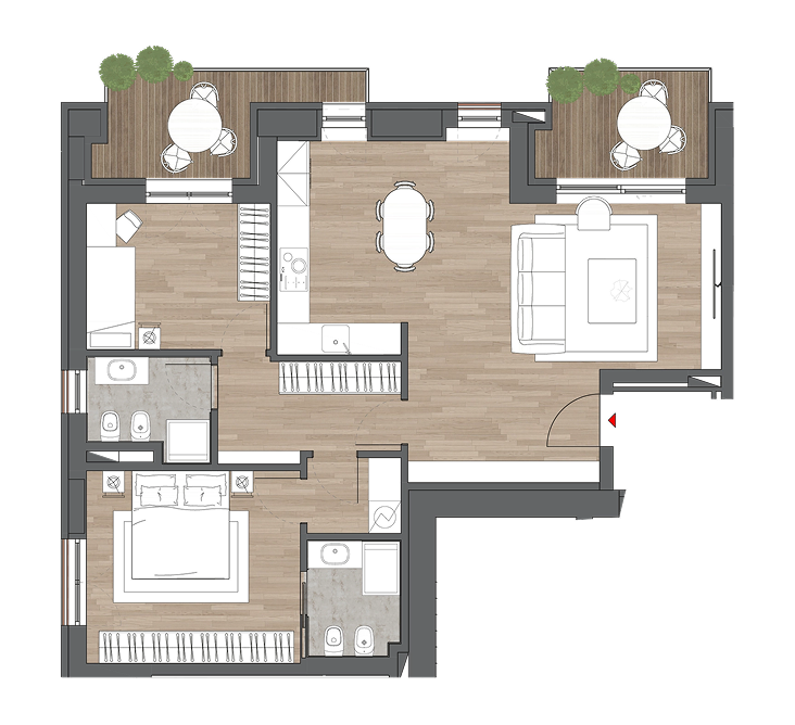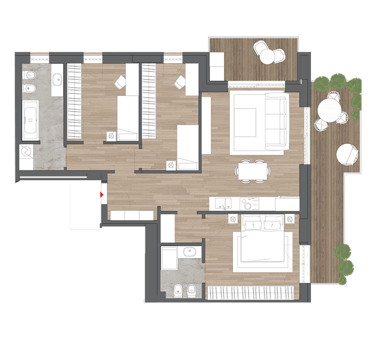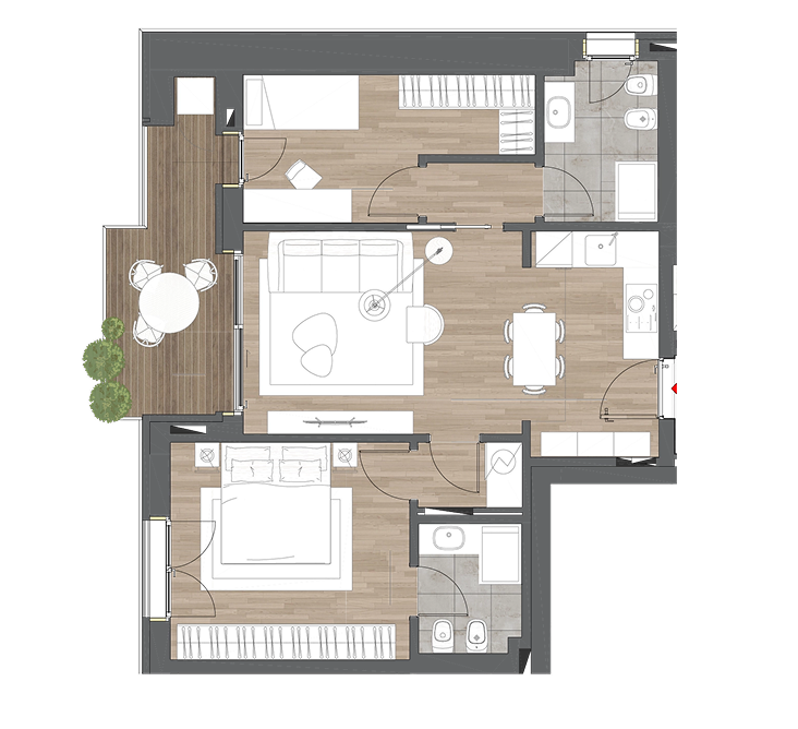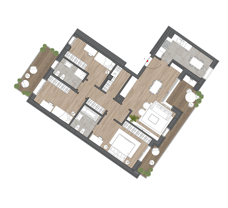 Una versione più ampia del trilocale per chi desidera ancora più possibilità. Spazi versatili, luminosi e contemporanei, pensati per accompagnarti in ogni fase della vita.